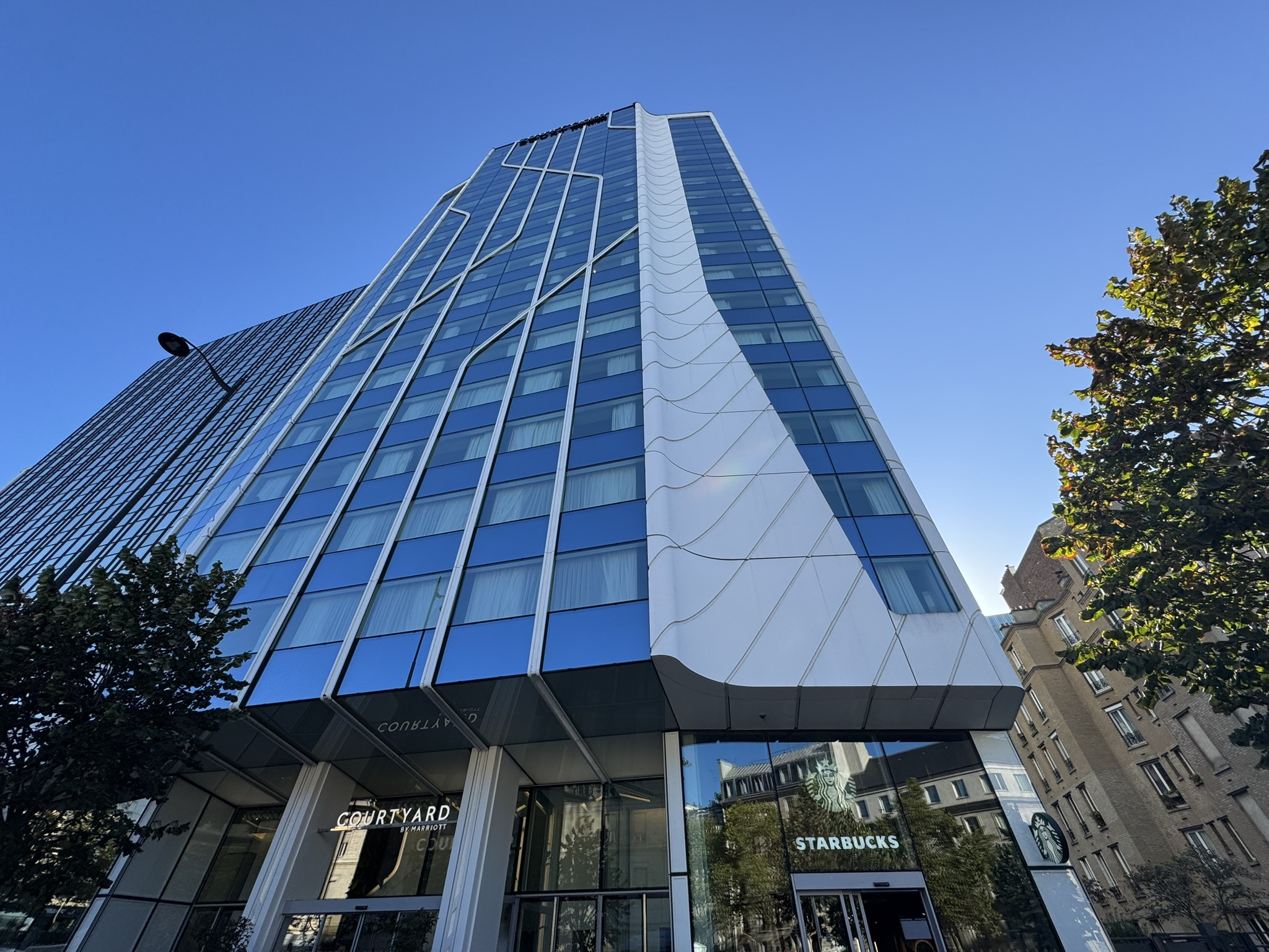 De kantoortoren van Paris Lyon, gebouwd in de jaren 70, is gerenoveerd tot een luxe Courtyard-hotel. De CCV-panelen zijn groot, parametrisch ontworpen en dubbelgekromd.